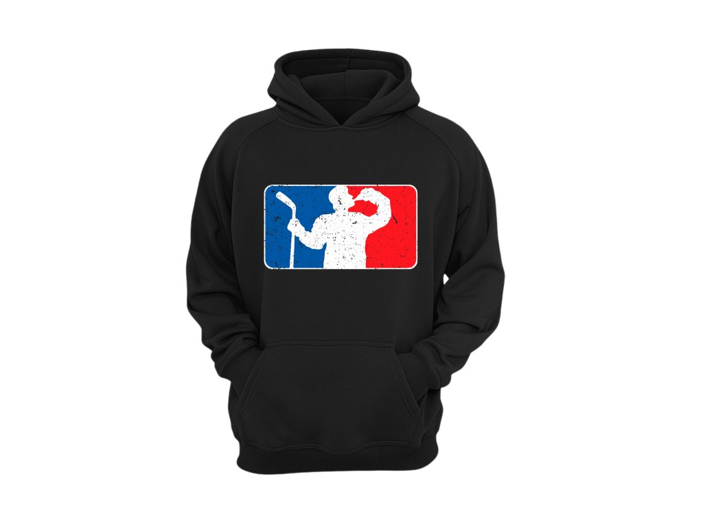 Stylová černá mikina s kapucí s originálním potiskem inspirovaným sportovními logy. Design tvoří silueta hokejisty s hokejkou a lahví v ruce, zasazená do ikonického červeno-modro-bílého obdélníku s vintage efektem. Mikina je vyrobena z pohodlného materiálu, má prostornou klokaní kapsu a kapuci,což zajišťuje komfort při každodenním nošení i na zimním stadionu. Perfektní volba pro všechny, kteří milují hokej a chtějí ukázat svůj styl i mimo led.
